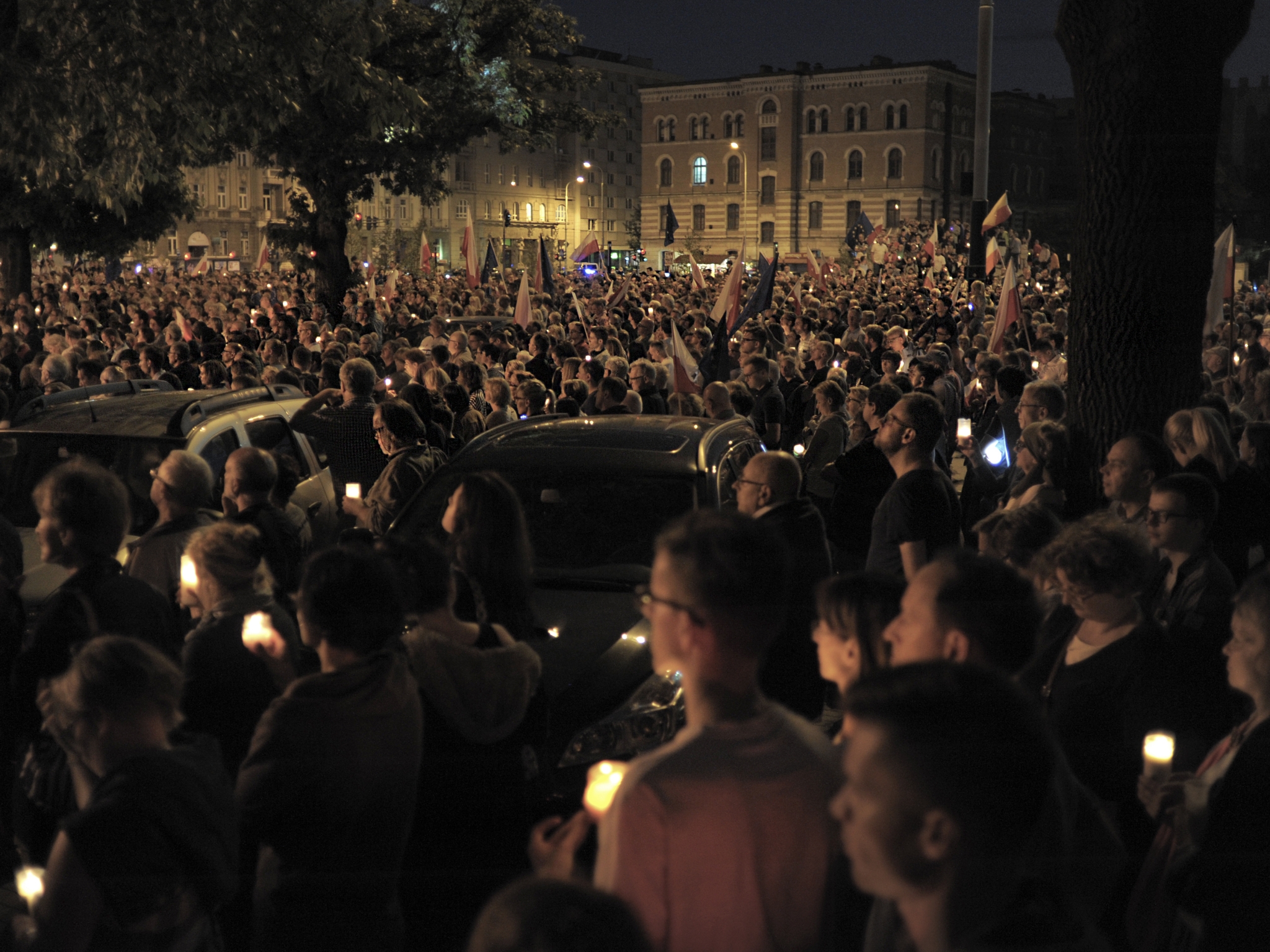 Niedziela. Łódź. Plac Dąbrowskiego. Tłum jeszcze większy. A ja, patrząc wokół, myślę, że nam w dużym mieście jest łatwiej. Poczułem, że łzy napływają mi do oczu, gdy przypomniałem sobie zdjęcia manifestacji pod Sądem Rejonowym w Ropczycach – dwóch chłopaków z flagą i napisem ze zniczy „3×veto”. Gdy wspomniałem, co czytałem o człowieku z Sierpca, który najpierw pod sądem stał sam; o pikiecie w Pajęcznie, której trzydziestu uczestników z pewnością nie wyglądało na rekiny wymiaru sprawiedliwości. To są prawdziwi bohaterowie lipcowych wydarzeń.